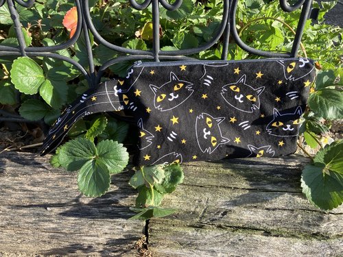 Handmade zippered wristlet bag (Clutch) Large by Lucky Burrito featuring black cosmic cats